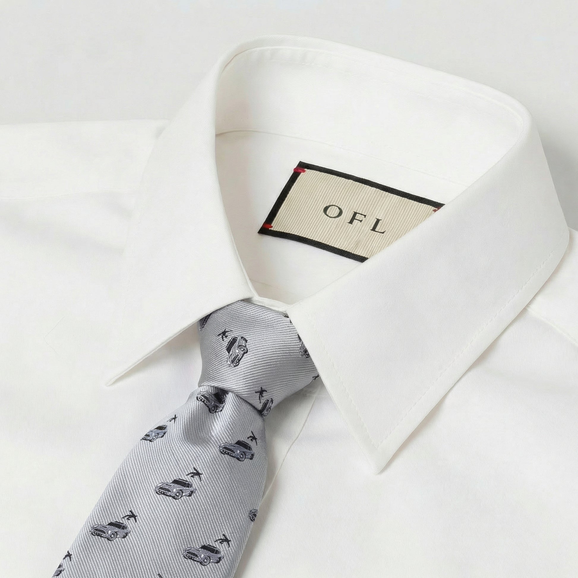 A sharp necktie paying homage to the iconic Aston Martin, complete with a sophisticated nod to its skyward launching ejector seat.