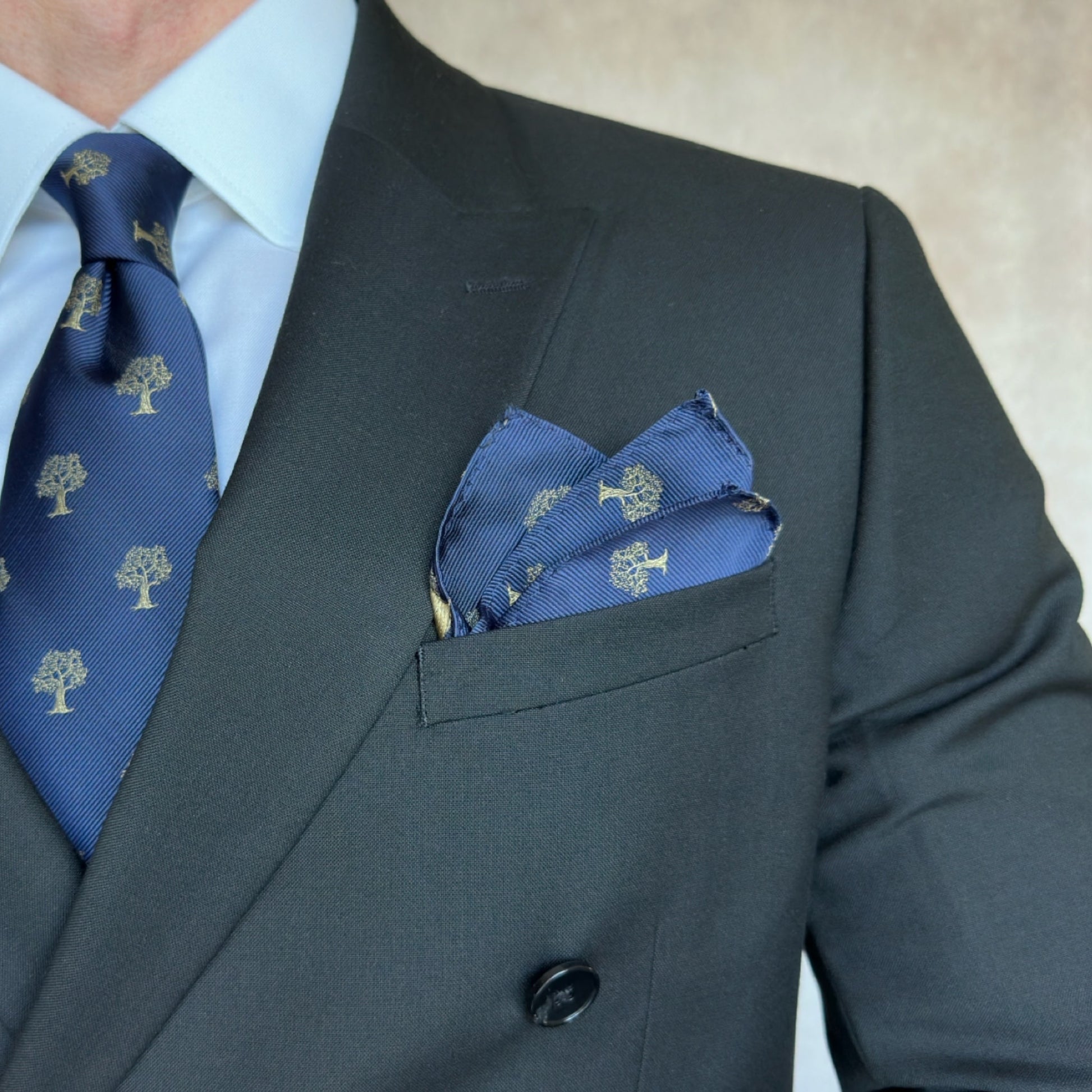 Navy Blue & Gold Tree Pocket Square