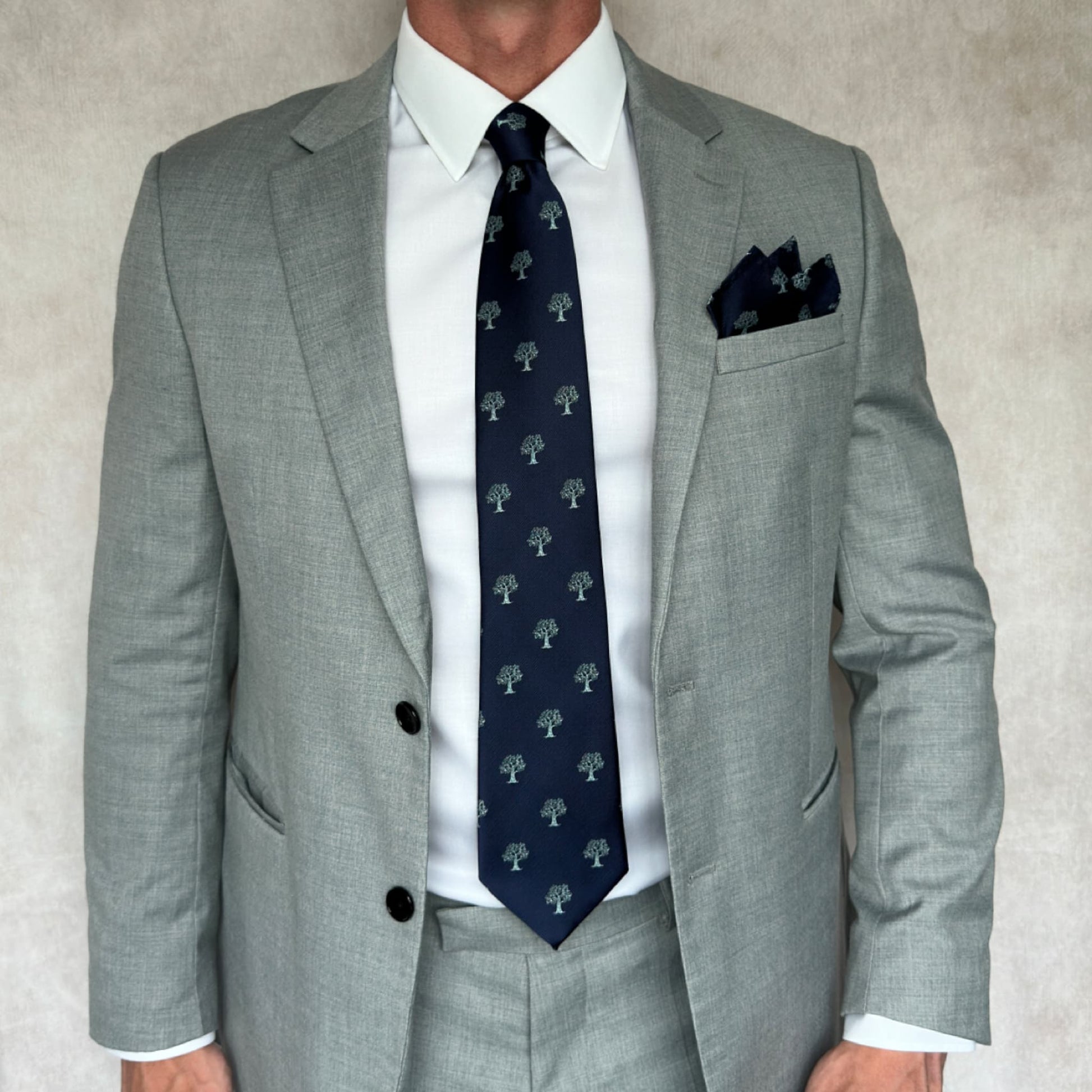 Elegantly crafted with sophisticated navy blue and silver hue, this pocket square is perfect for adding a confident edge to any look.