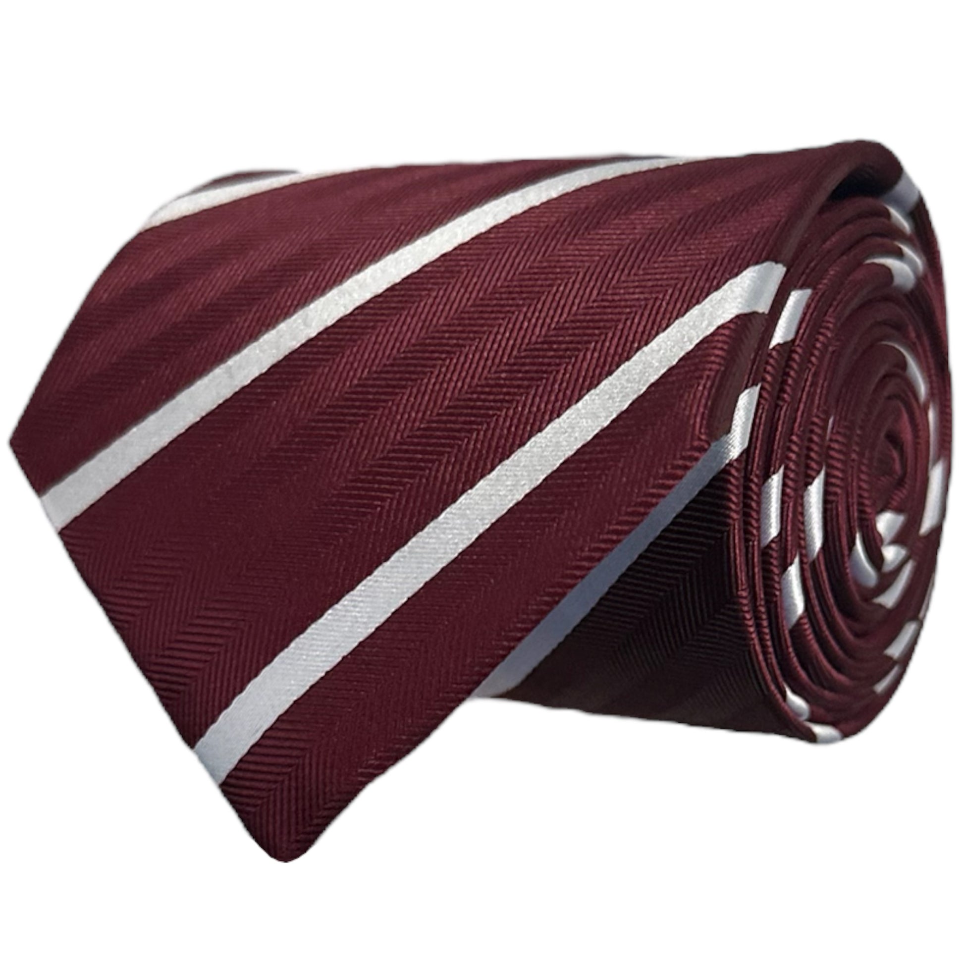 Elegant and refined, this burgundy herringbone tie features a crisp white single stripe for a sleek, timeless look.