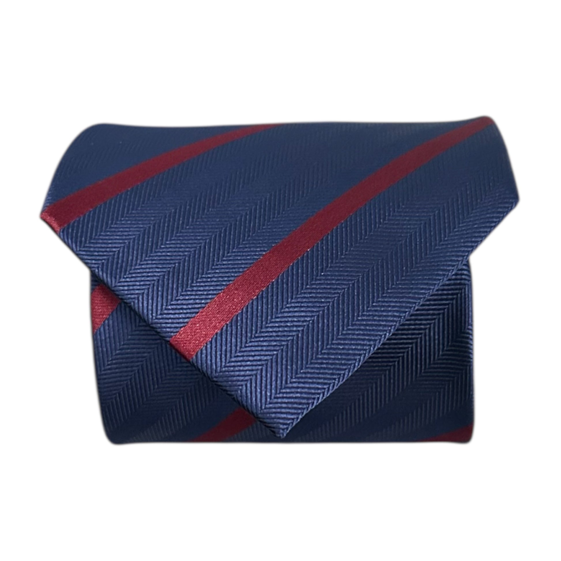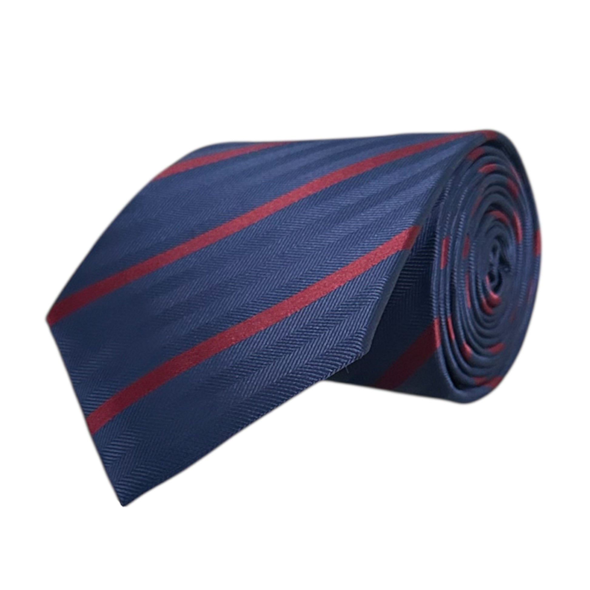 Crafted with expert precision and design, our Navy Blue & Wine Single Stripe Tie is the epitome of sophistication. The herringbone pattern exudes refined elegance, making this tie a must-have for any occasion.